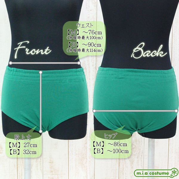 ウエストゴムが優しくフィットする緑色のブルマ単品大きめサイズ。