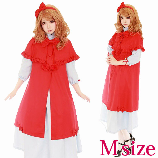 レースやリボンを施した長めの真っ赤なマントやボンボン付のリボンがとってもキュート♪可愛いハロウィン仮装をお探しの方はぜひどうぞ!カチューシャ付き