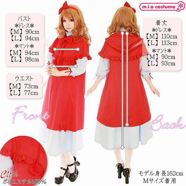 Mサイズ:ドレス(B90cm・W73cm・着丈110cm)・マント(B94cm・着丈90cm)