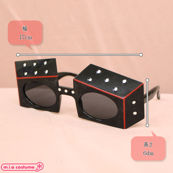 かけるだけで目元がユニークに♪立体的な形が個性的なサイコロ型のサングラス(黒)。
