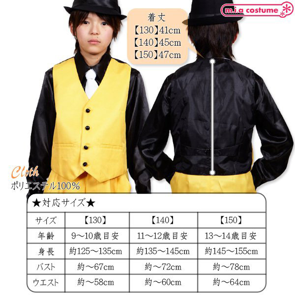 140サイズ 対応サイズ:身長135〜145cm・B〜72cm・W〜60cm 実寸:着丈45cm