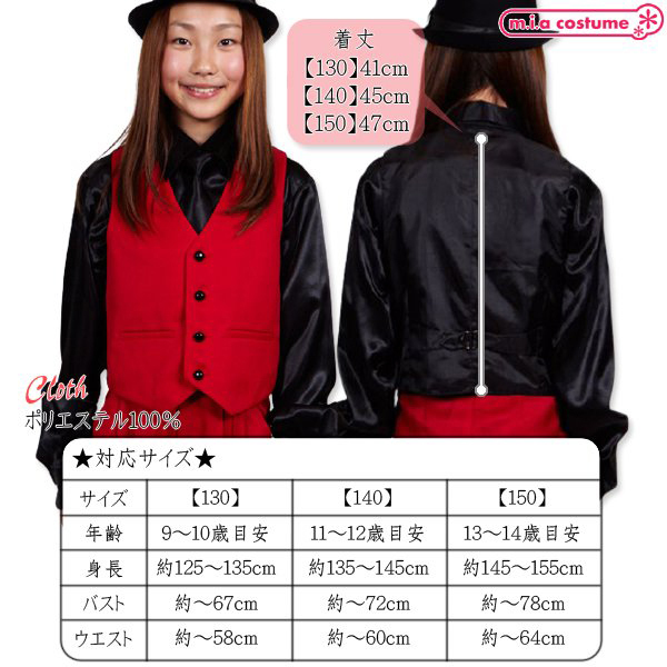 140サイズ 対応サイズ:身長135〜145cm・B〜72cm・W〜60cm 実寸:着丈45cm