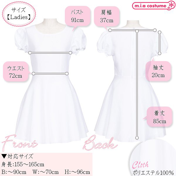 対応サイズ:身長155〜165cm・B〜90cm・W〜70cm・H〜96cm 実寸:B91cm・W72cm・肩幅37cm・袖丈20cm・着丈85cm