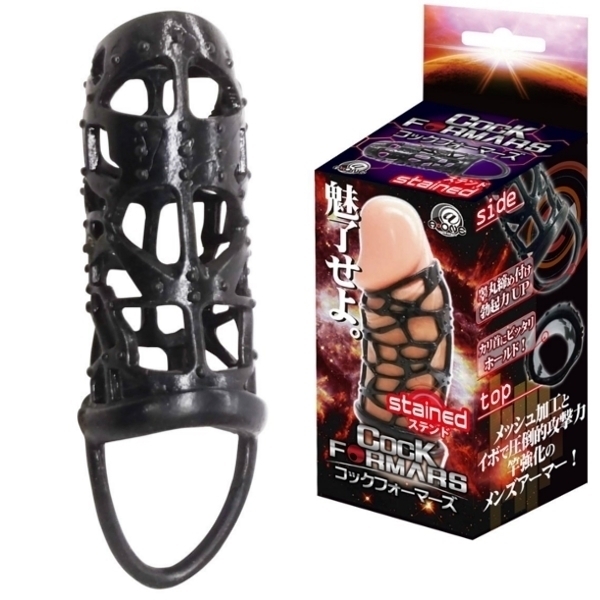 ●メッシュ&イボのステンド●サイズを選ばない伸縮素材●裏筋にイボを集中的に配置●カリ首をホールドする設計●固定できる玉掛けリング付き。