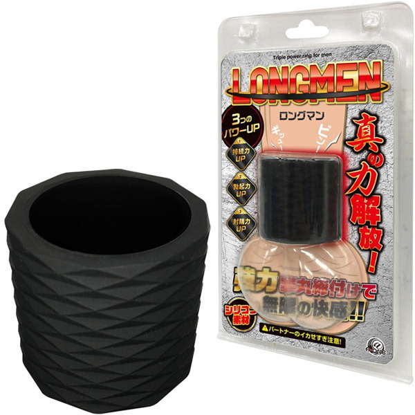 筒状リングを玉袋の根元に装着するだけで『持続力』『勃起力』『射精力』3つのパワーアップをサポート!シンプルな形状ながら高弾力シリコン素材でしっかりと締め付けます。