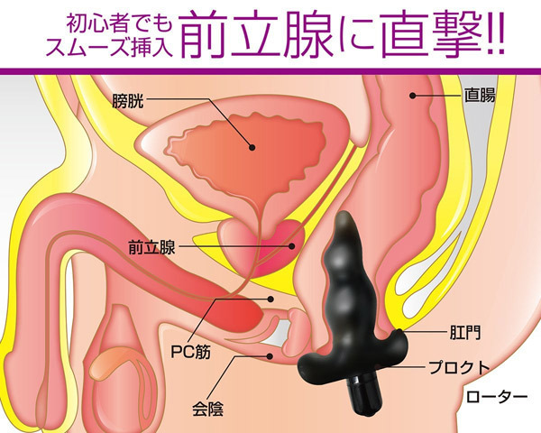 アナルプラグのようなストッパー付きの本体は先端が前立腺をしっかり捉えるジャスト形状!クビレ部分が抜け落ちを防ぎつつ、クイッと曲がった先端部分が前立腺に直撃!ピンポイントでしっかり捉えて内部を強力に刺激します。