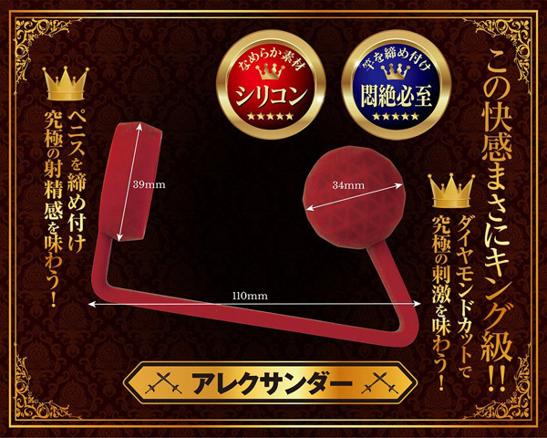 キングの称号が相応しい、最高峰のアナルプラグが登場しました!こちらはコックリングとアナルによるダブルの刺激が楽しめる逸品で、挿入部分の最大系は約3センチの球形、もう片方はペニス部分に装着できる幅広のリングが付いていて玉とリングが繋がっているのが特徴です。
