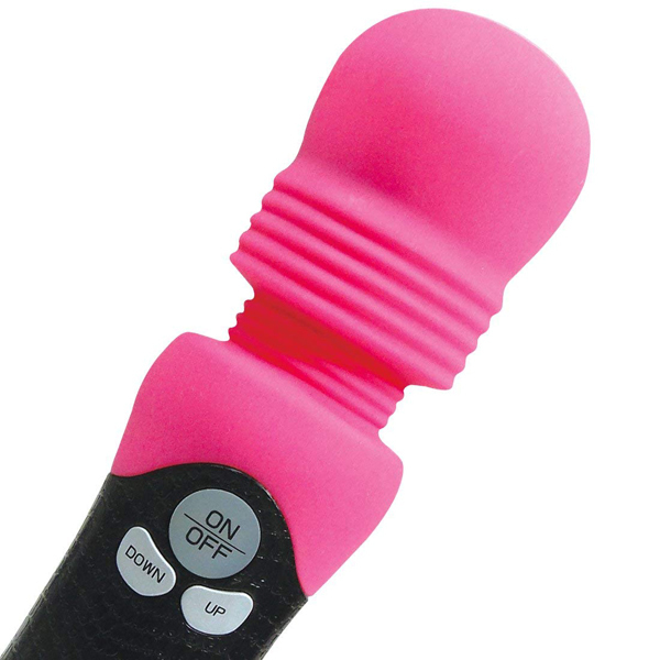 3つのボタンで簡単操作!10段階もの強弱から選択でき、最大径4.5cmの大きく平たいヘッドが広範囲を刺激。