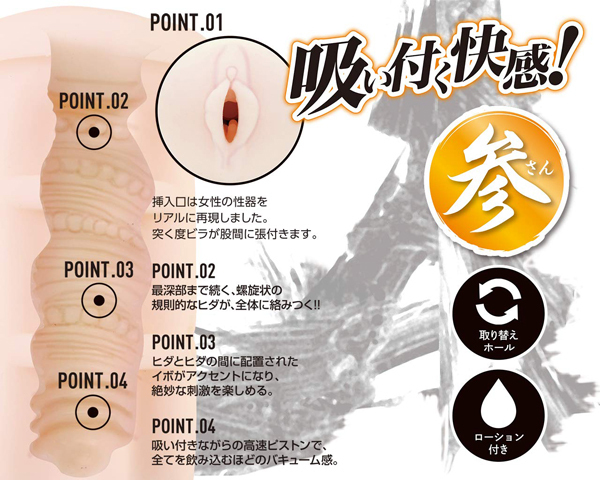 ピストンキング電王の専用ホールが3種同時に参上!!吸い付く快感が楽しめる参は、螺旋ヒダバキュームTYPE!!