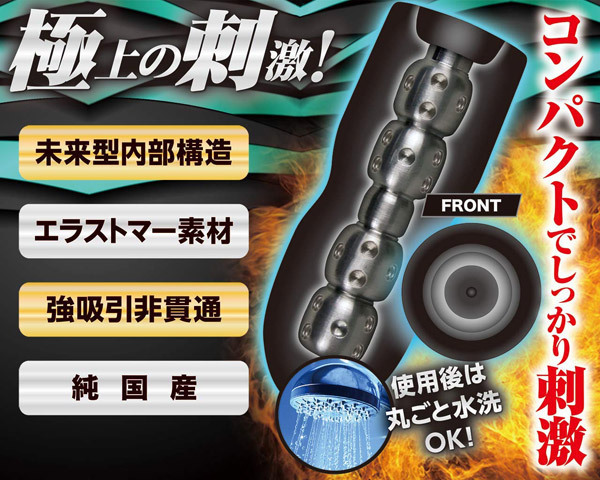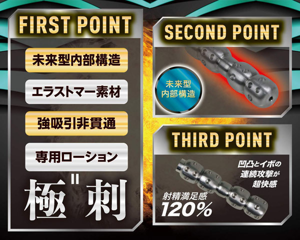 強吸引の刺激がマッハで射精を促す!凸凹構造+無数のイボによる亀頭への連続攻撃が極上の刺激と超快感を生み出す。