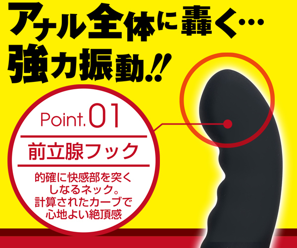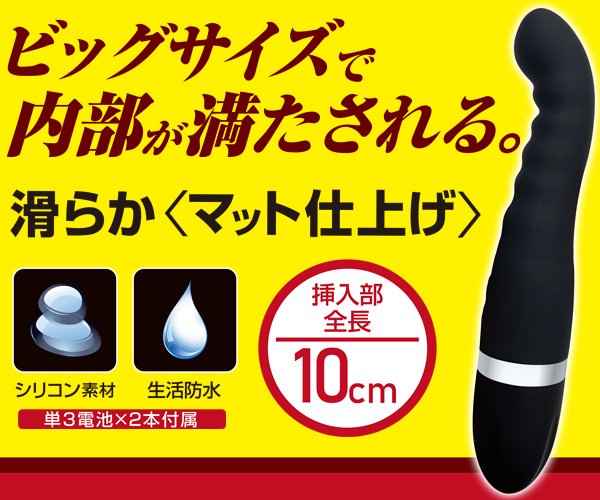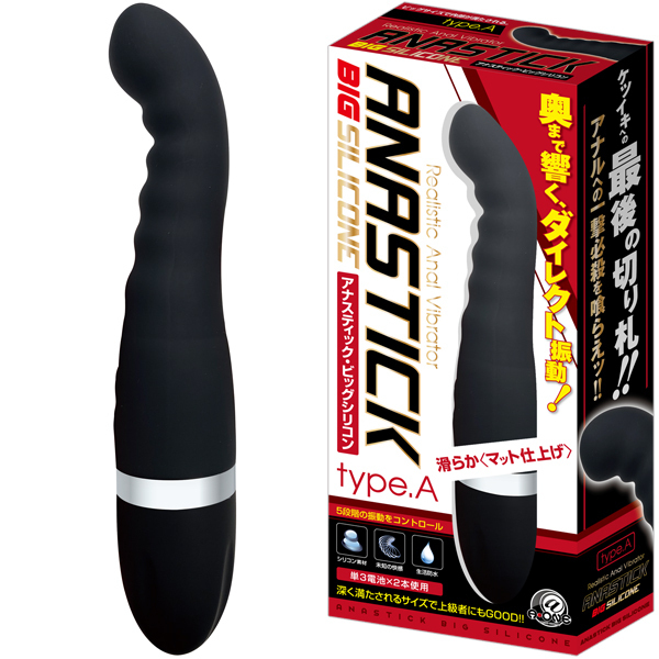 初心者にも挿入しやすい「アナスティック・ミニシリコン」が大きくなって登場♪波状ボディで腸壁を刺激しながら、フック形状の先端で前立腺を的確に狙い撃つ!5段階の強力振動が中で激しく響き渡る♪全長20.5cm、挿入部全長10cmのビッグタイプで充実感たっぷり!滑らかなシリコン素材で仕上げた生活防水仕様のアナル用電池式バイブ。