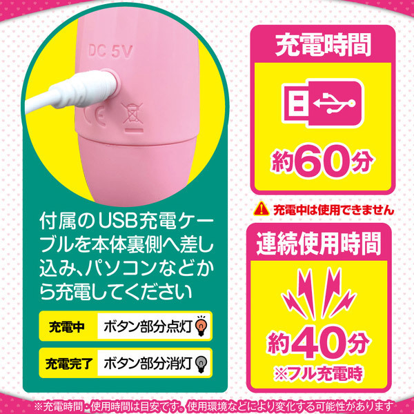 可愛い見た目でビリビリ痺れる強力振動!女性でも持ちやすい重量103gの軽量型USB充電式電マ。