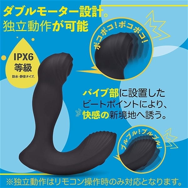 感じたことのないポコポコ快感でオルガズムを極めるあなたに!気持ちいいテクスチャーは高品質シリコーンゆえ、挿入部と会陰部は独立のダブルモーター搭載。