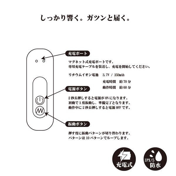 しっかり奥まで届く強振動モーターが先端下部と最下部に搭載されているので、より欲しい快感部位に届くように設計されています。