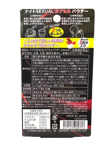 厳選された16種類の成分を独自配合したカプセルタイプのパウダーです♪黒マカ粉末、ガラナ末、スッポン末、高麗人参エキスパウダーなど、こだわりの成分があなたの活力をサポートします!カプセルはそのまま飲んでも、パウダーを飲み物に混ぜても楽しめる設計です♪粉末は自然な甘みで、様々な飲み物に溶けやすく着色しにくいのも魅力!持ち運びに便利なパウチタイプで、外出先でも気軽に使えます♪安心の日本製カプセルで、品質管理も徹底しています!あなたの毎日にプラスのサポートを、ぜひお試しください♪