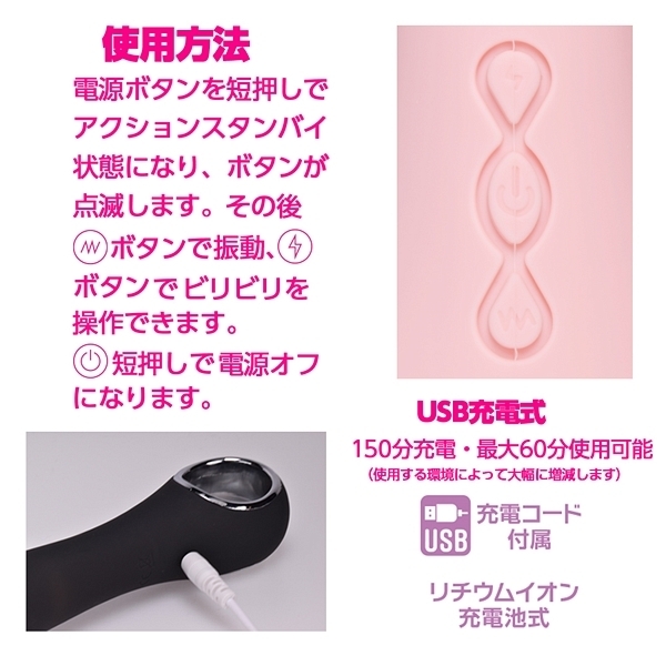 振動・ビリビリ刺激は個別に操作が可能で、ビリビリ7パターン。