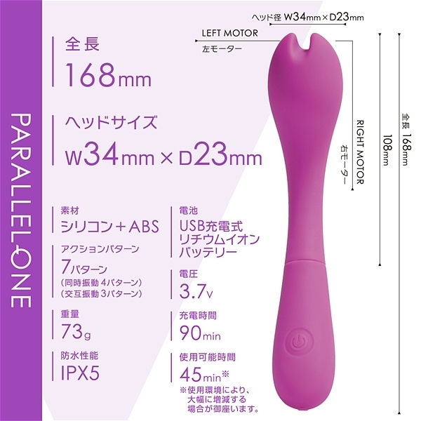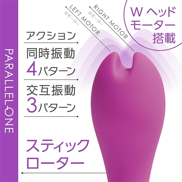 先端に並列で2つのモーターを搭載して、個別に振動させる事が出来るツインモータースティックです。