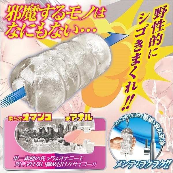 肉厚透明素材がググっと締め付ける!ソフト素材とハード素材のシームレス貫通ホール。