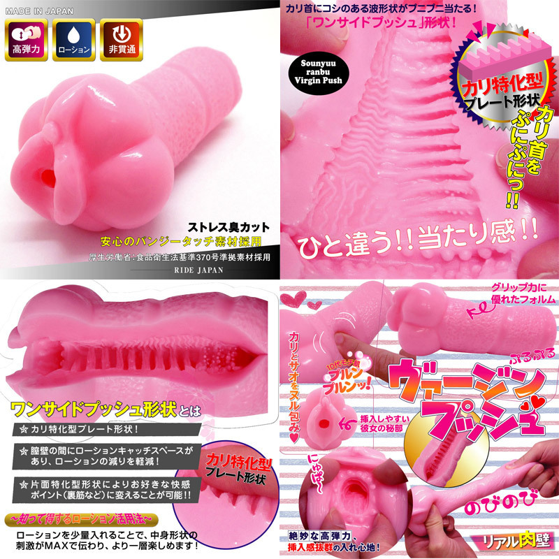 内部は片側のみにヒダを配置したカリ特化型!ホールをくるりとまわせば、裏スジへのピンポイント刺激も可能な快感オナホールです。