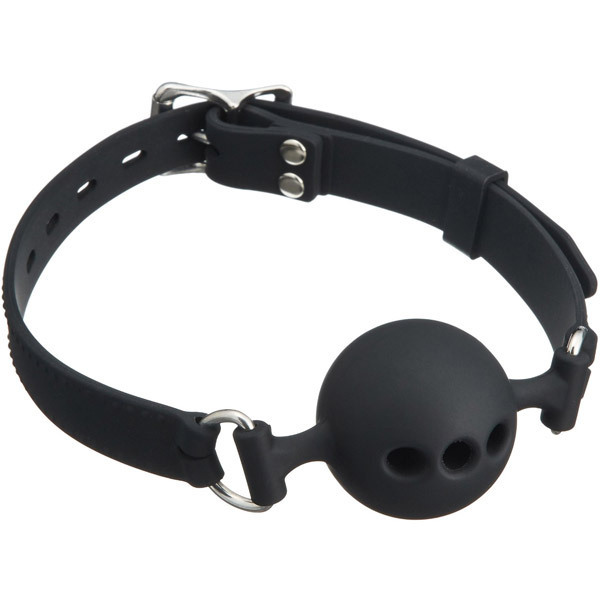 シリコン特有の密着性と伸縮性で装着感抜群!金具以外をすべて高級シリコンで仕上げた、虜シリーズのプレミアム版ボールギャグ(黒)。