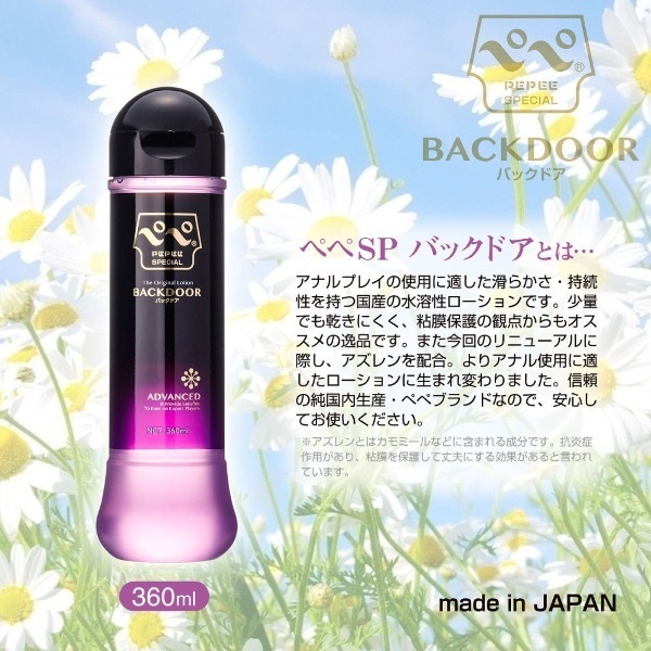 アナラー待望の逸品!幅広く愛用されているペペスペシャルシリーズに、超特濃アナルローション「ペペスペシャル バックドア」が登場!特殊製法により実現した濃度と特殊成分で、長時間潤いが持続!従来のクオリティはもちろんそのまま!こってり濃厚な使用感のアナル用ローションに仕上がっています。