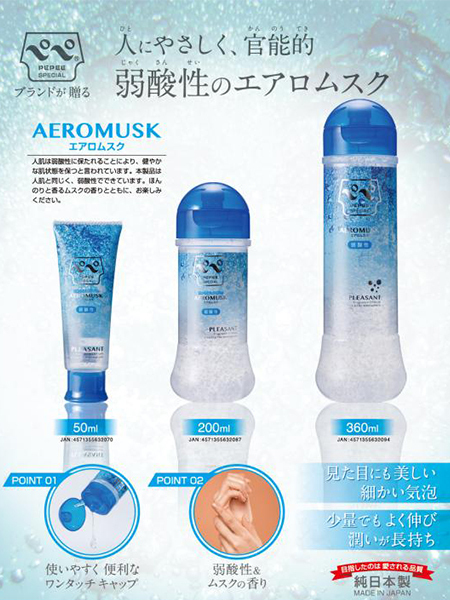 ほんのりと優しく香るムスクの香りが官能的で、しっかりとした粘度と相まってエッチな気分を盛り上げます♪ローションには細かな気泡が入っていて軽いテクスチャーと滑りが心地よく、便利なワンタッチキャップを採用しているので使いやすさも抜群です!気分を盛り上げたいときにもどうぞ。