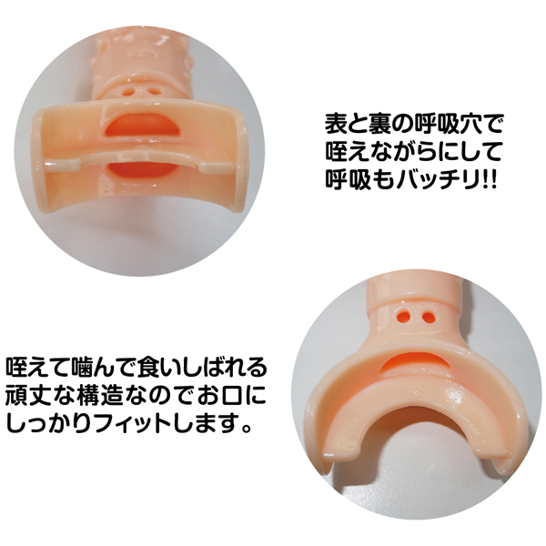 口に含む部分はフィット感抜群で、しっかり食いしばれるように頑丈構造に設計!表裏に呼吸穴がありますので呼吸面も問題ありません。
