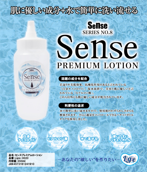 リグレの大人気「Senseローション」シリーズ最高峰!美肌に嬉しい白金ナノコロイド、ヒアルロン酸を贅沢に配合した、高保湿高粘度なプレミアムローション350ml。