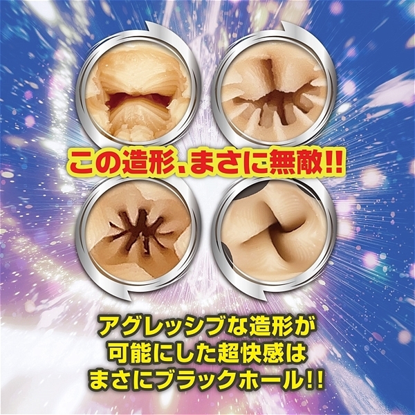 まさに時空回転!極太のヒダが回転し、そして絞りにうねり、最後はクラッシュ!時空回転「スペースバンプス」の登場です!この造形!まさに無敵!超快感の極太ゾリゾリヒダが左右上下に回転!間に絞りを入れながらも細かい尖がりヒダで超ゾリゾリ体験!さらには亀頭を撫でまわすような山ヒダにゾリゾリ造形!待ったなしの最後はクラッシュ子宮で即イキ確定!こんな贅沢すぎるオナホが今まであっただろうか!?最初から最後まで快感が上り詰める!ピストン運動でアナタは宇宙を体験するだろう!これはオナホのブラックホールだ!!