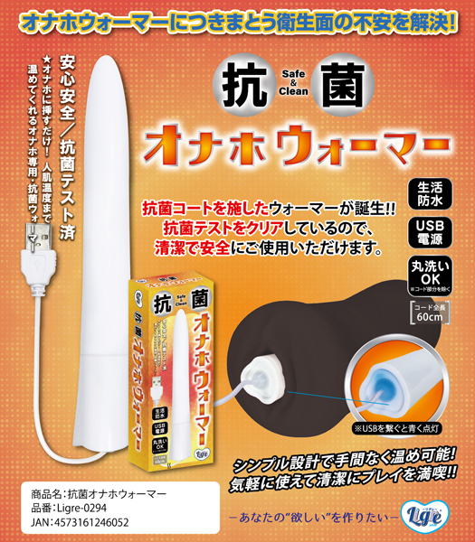抗菌テスト済の「抗菌オナホウォーマーリグレジャパン」が登場です♪オナホを温める際に気になる菌の発生を抑えるために開発されたこの商品は、安心してご利用いただけます!しっかりと抗菌テストをクリアしたので、衛生面での心配はありません♪生活防水仕様で、コード以外の部分は丸洗いが可能!USB電源を使用し、簡単に電源を取ることができ、挿入後約5分で人肌温度まで上昇します♪使い方も非常にシンプルで、手間なくオナホを温めることができます!抗菌済なので、菌の心配をせずに安心してプレイが楽しめます♪シンプルな設計で、誰でも気軽に使えるのが特徴です!これまでにない安心感と快適さを提供する抗菌オナホウォーマーで、楽しく安全なプレイをお楽しみください♪