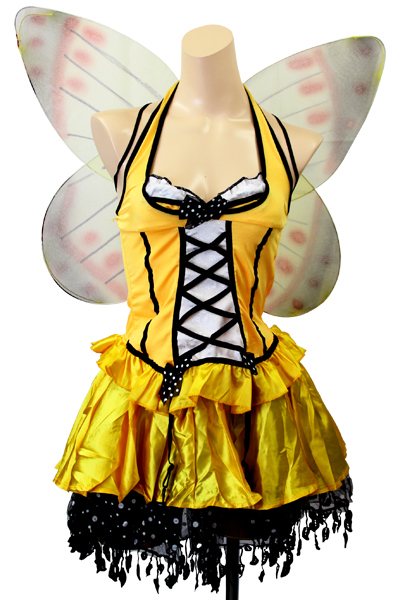 カラフルで大きな蝶々フォルムの羽付き♪セクシー&キュートなミツバチ風のコスプレ衣装。