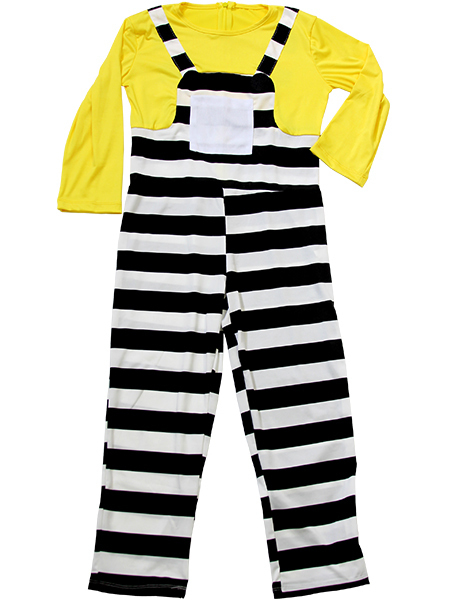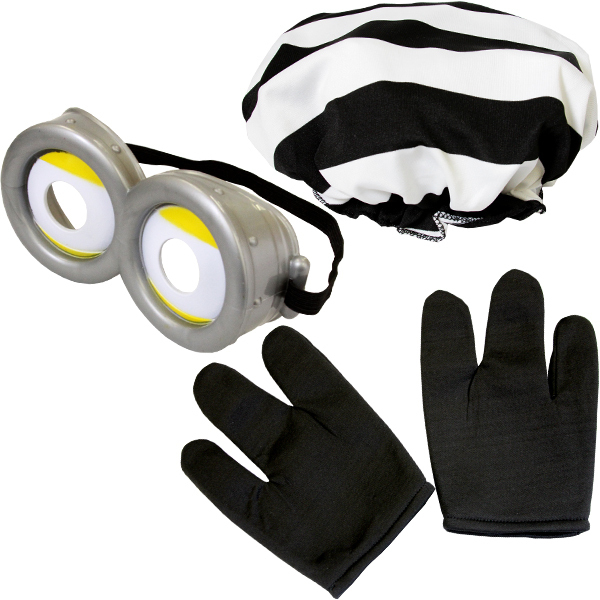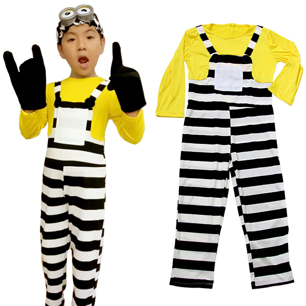 歌って踊ってにぎやかな、世界中で大人気のキャラになろう!子供用130サイズの仮装コスチュームです♪オーバーオール風のボーダー柄一連服と帽子、真っ黒な手袋にパッチリお目目がついたゴーグルのセットがあれば、子どもは皆バナナが好物なあのキャラクターに大変身!人数が多ければ多いほど、きっと盛り上がりも増すはず♪ハロウィン時期はもちろん、お子様の発表会などにも最適です!