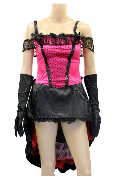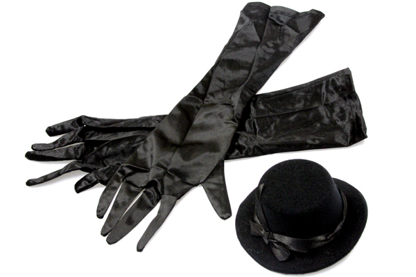 セット内容:ワンピース(背面ファスナー)・ロング手袋×2(全長42cm)・ミニハット(クリップ留め)