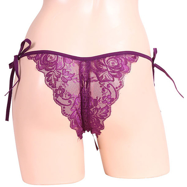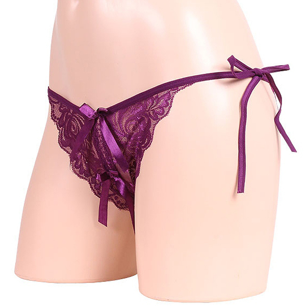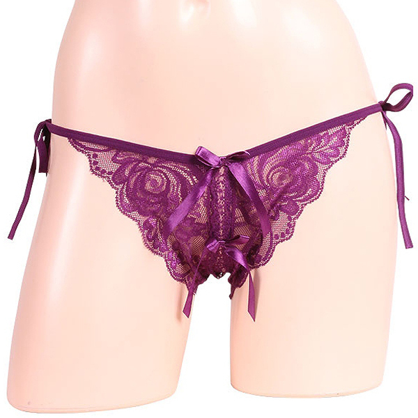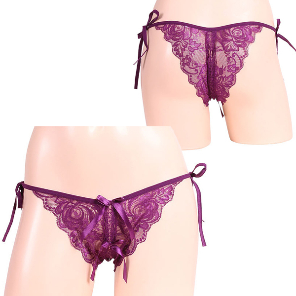 【410円★数量限定】女らしさ満開サイドリボンオープンショーツ パープル<お一人様1点限り>