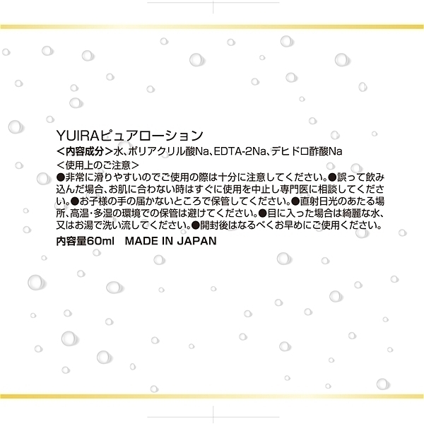 YUIRAより、使いやすいミニボトルサイズ(60ml)のローションが5種類一挙リリース量が多すぎる持ち運びずらい、そんなアナタにピッタリの商品です!保湿!潤滑性!ほど良い伸び!無色・無味・無臭中高粘度のスタンダードローションです!安心安全の日本産商品です。