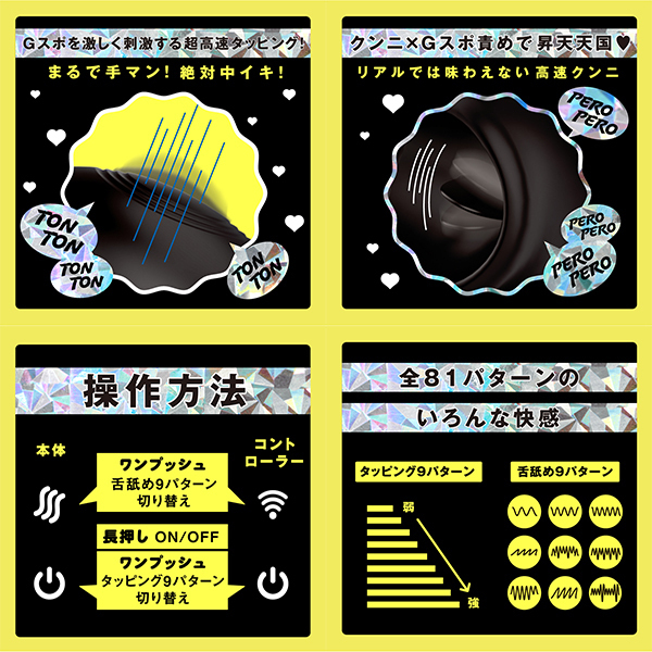 Gスポ覚醒!高速タッピング!超!愛を感じる舐め×手マンバイブ!トントンとGスポを刺激する高速タッピング機能はまるで手マンされているかのような極上快感!スベスベの舌で舐め上げるクンニはリアルでは味わえない超高速舌技!クンニ×Gスポ責めでたまらない快感_遠隔操作コントローラー付きなので、手放しでも楽しめます!中イキ開発にもオススメです_敏感な部分に直接触れるものだから、ぷにっとソフトな素材を使用しました。