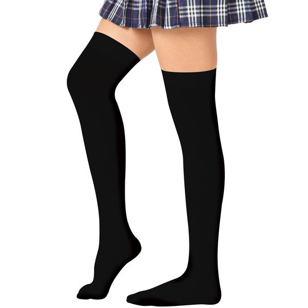 シンプルなブラックカラーのニーソはミニスカコスチュームと相性バッチリ!さらさらとしたシルキーな肌触りが魅力です。