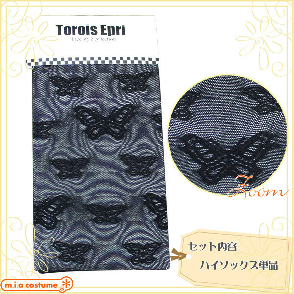 【在庫限り!大特価】嬉しいプチプラ価格♪透け感が涼しげなTrois Epri(トロアエプリ)の蝶柄ハイソックス。