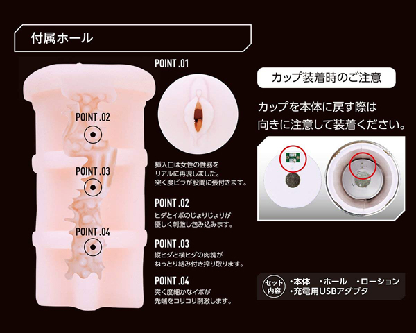 セット内容:本体、ホール、ローション、充電用USBアダプター USB充電式