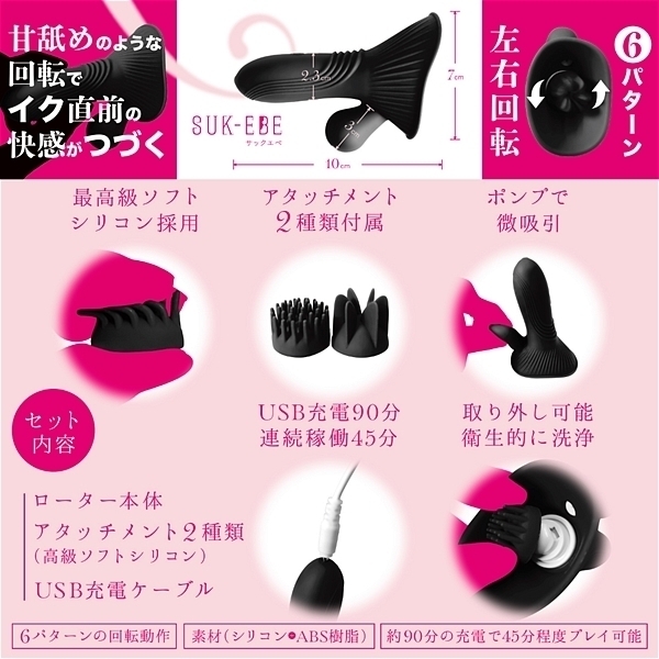 【セット内容】ローター本体/アタッチメント(高級ソフトシリコン)/USB充電ケーブル。
