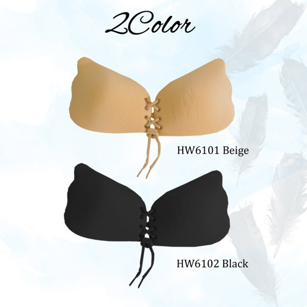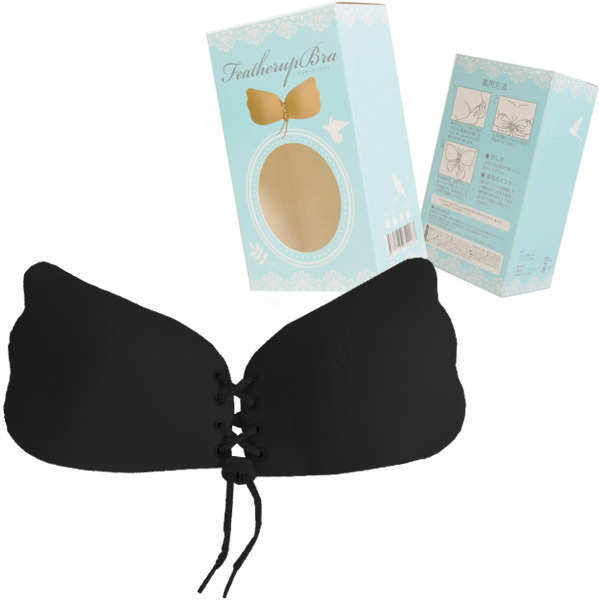 寄せて上げて谷間もメイク♪天使の羽型シリコンブラ「フェザーアップブラ ブラックA」。