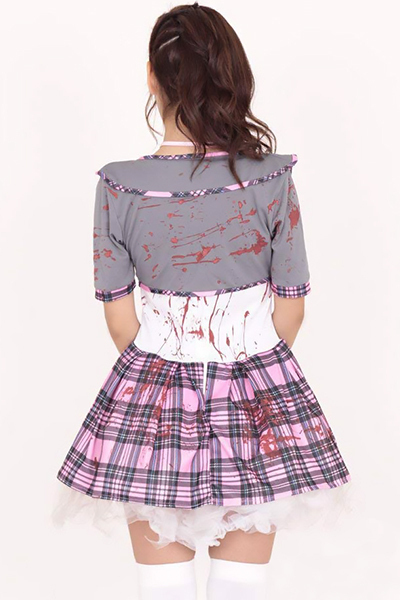 思わずキャーッと叫んじゃう、こわ〜いゾンビ風セーラー服コスチューム。