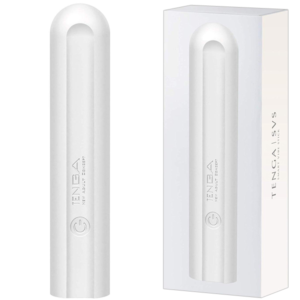 TENGA SVRのパワフル振動はそのままに、先端45度の角度調節が可能なフレキシブル仕様のスティック型ローター(白)。