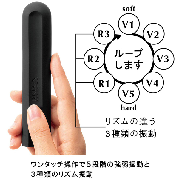 スイッチ一つの簡単操作で5段階の振動調整&3種類のリズムを選択可能!最大60分間続く強力振動で2人の夜を刺激的にするスタイリッシュなUSB充電式ローター。