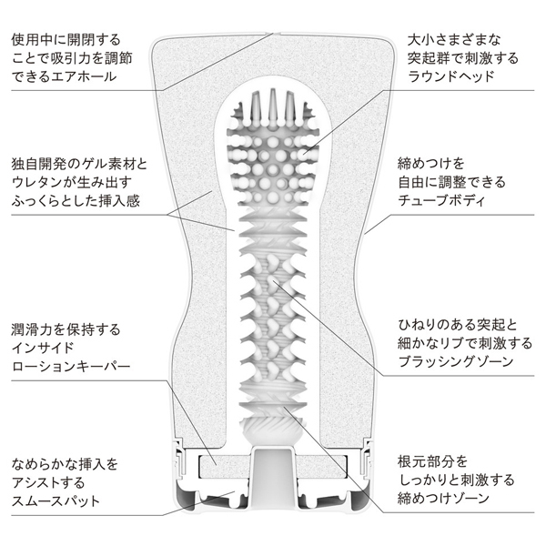 くびれが追加されたことでグリップ力UP!自由自在に締め付け感をコントロールできる「スクイズチューブカップ」。