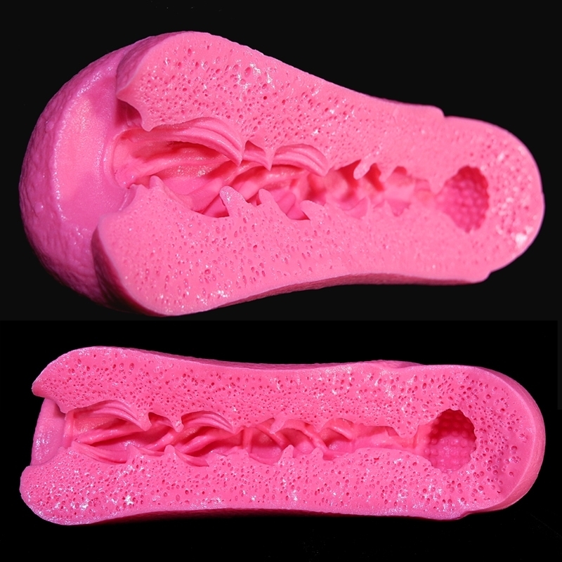 高品質の発泡素材「ファインクロス」を使用した、ふわっふわの本体内部には4つの仕掛けが!まず前半部分では、肉棒に絡み付き優しく撫で上げるような感触を。