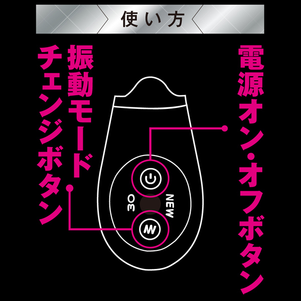 肌に優しいシリコン素材を使用し、重さは84gと軽量!電源オンオフと振動操作用の2つのボタンのみの操作で初めての方でも簡単に扱えます。