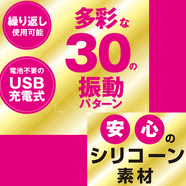 女性でも持ちやすいサイズ感で、メディカルグレードのシリコンコーティングされたボディが多彩な30種類の振動であなたを快感へと導いてくれます♪電源はUSB充電式で電池不要!ワンボタンで簡単操作できるシンプルデンマで安心のシリコーン素材コーティング。