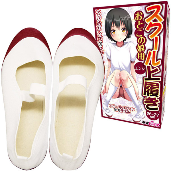 ●昔懐かしい定番フォルム●白×エンジのバイカラー●甲部分にゴムストラップ●通気性がよく履き心地◎●26〜27cmで男の娘でもOK●制服・体操服など学校系コスチュームのお供に。