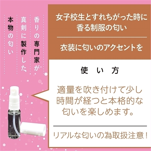女性の特有の匂いを詰め込んだ香りグッツは衣装に匂いのアクセントを。
